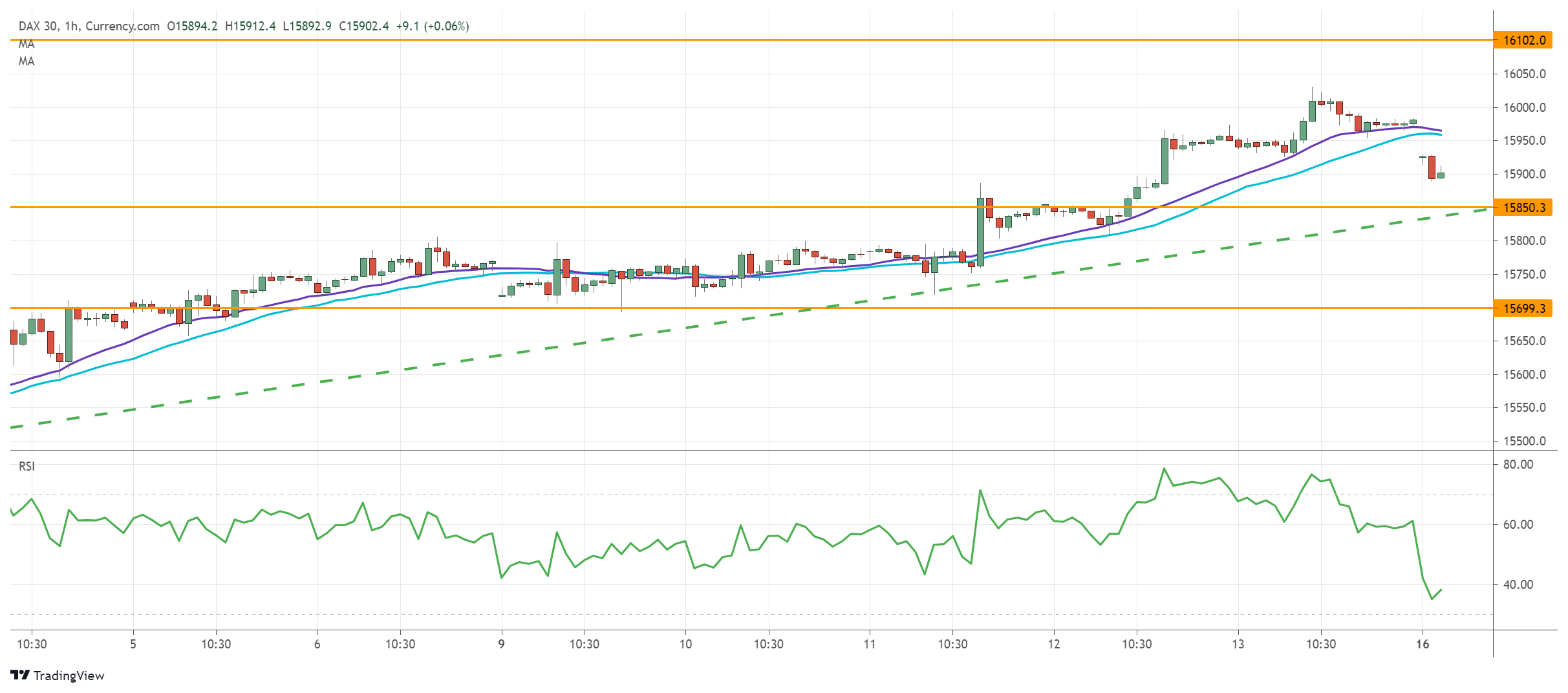 15850 on the trendline is a key support should this happen. Then a rebound would lift the index to 16100.