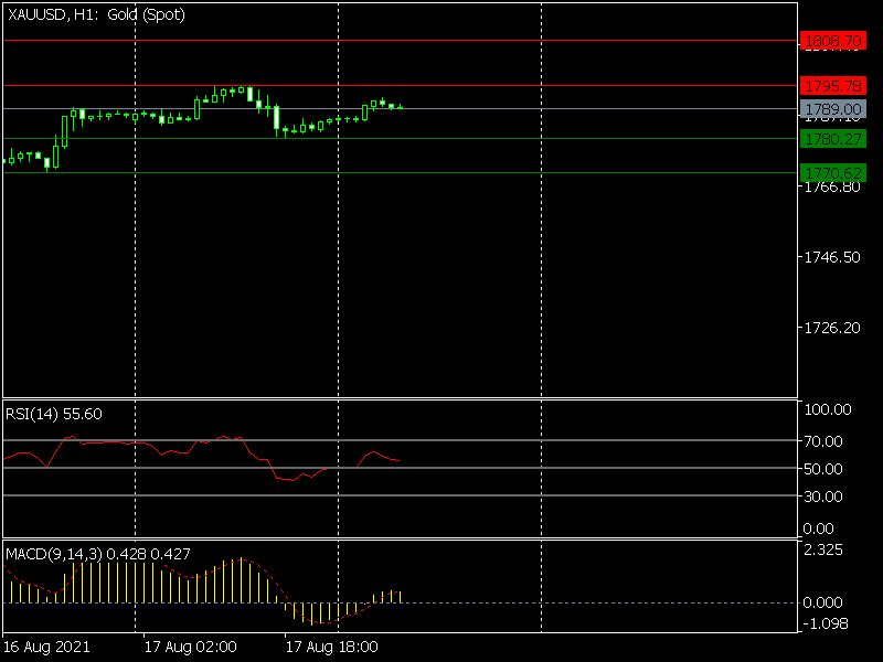 If the price passes the initial resistance level of 1,795.78, it could test the next higher at 1,808.70.