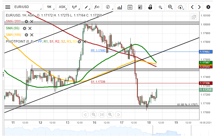 However, the 61.80% Fibonacci retracement level at 1.1707 could provide support for the currency exchange rate within this session.