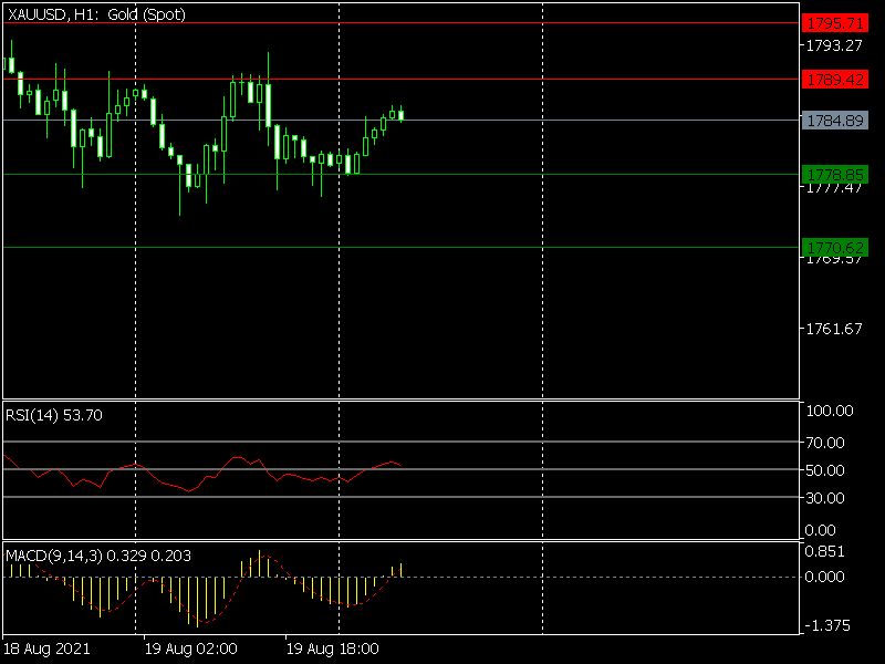 If the price passes the initial resistance level of 1,789.42, it could test the next higher at 1,795.71.