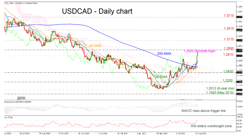 USDCAD posted an aggressive rally on Thursday, jumping above the 1.2810 barrier and printing a new eight-month high of 1.2920.