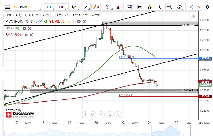 Downside risks pressured the USD/CAD currency pair lower on Monday. As a result, the US Dollar declined by 188 pips or 1.47% against the Canadian Dollar during yesterday’s trading session.