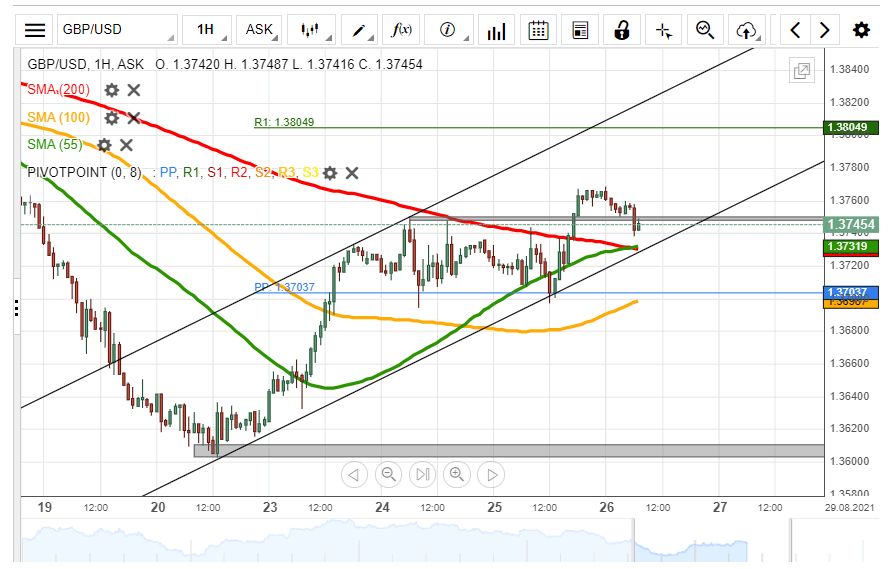 On Wednesday, the British Pound surged by 62 pips or 0.46% against the US Dollar. The currency pair breached the weekly resistance line at 1.3750 during Wednesday’s trading session.