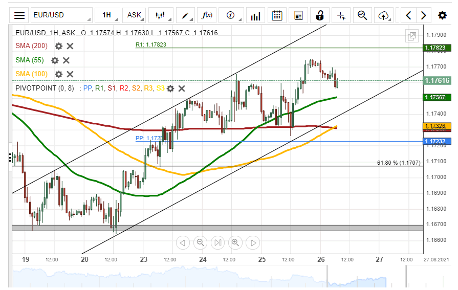 On Wednesday, the EUR/USD currency pair bounced off a support level formed by the 200– hour simple moving average at 1.1729. As a result, the common European currency surged by 43 pips or 0.37% against the US Dollar during Wednesday’s trading session.
