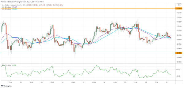 The Japanese yen inched higher after a drop in July’s unemployment rate. The pair is in a narrowing trading range following its bounce off the demand zone at 109.10.