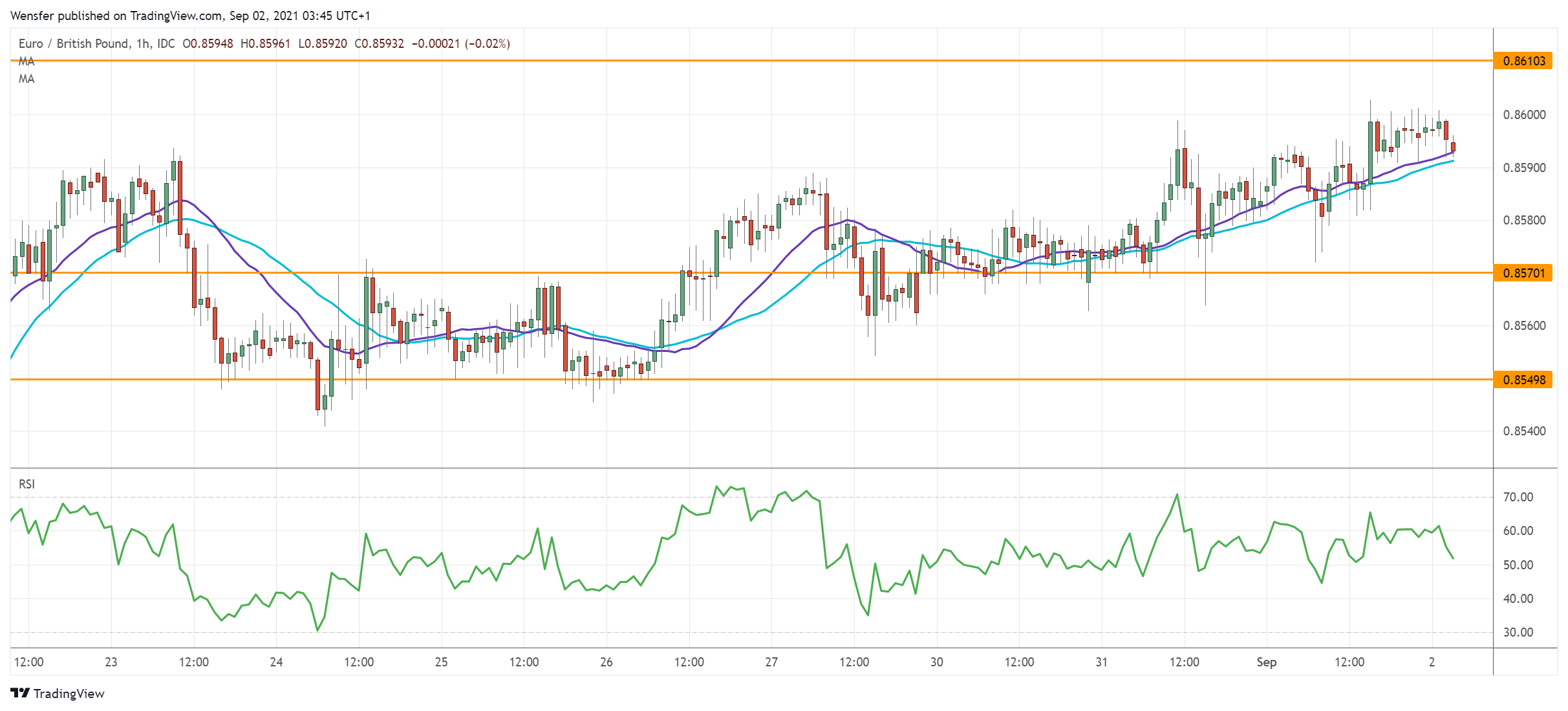 Following a short consolidation, the single currency has met buying interest along 0.8550 and then 0.8570. 0.8610 is the next resistance and its breach could clear the path for a rally to the recent peak at 0.8660.