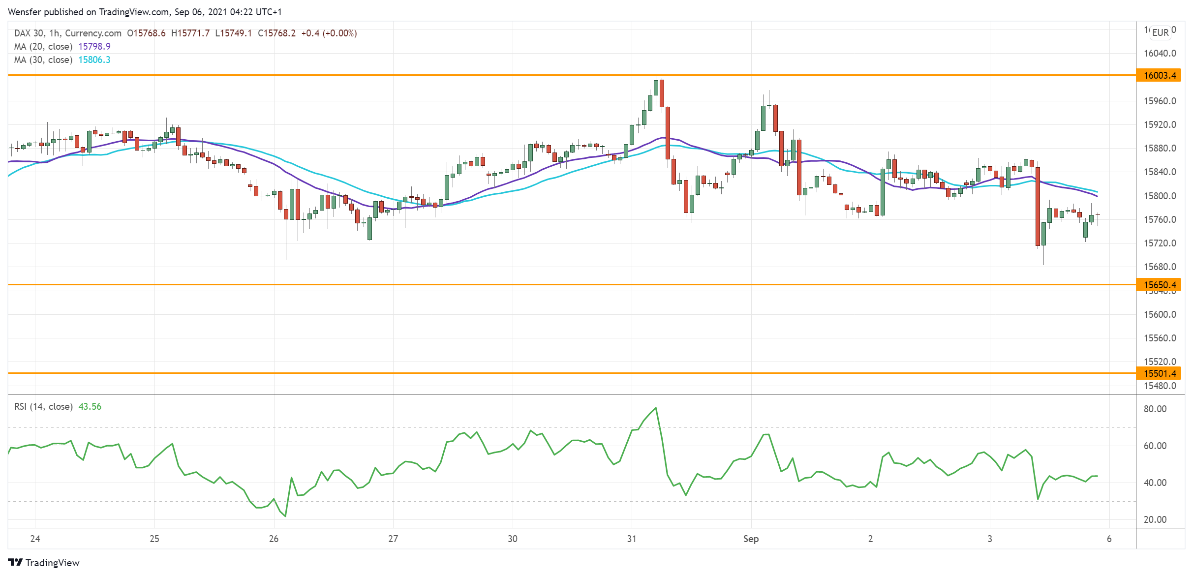 A bullish breakout would trigger an extended rally when momentum traders join the party. A fall below 15650 would prolong the sideways action to 15500.
