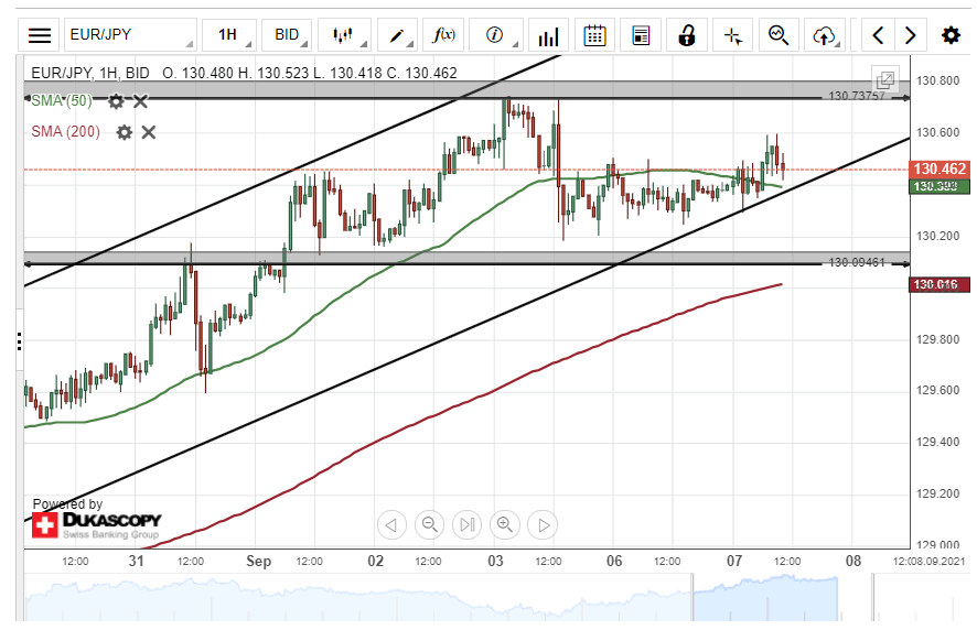 If the breakout occurs, a decline towards the 200– hour simple moving average at 129.90 could be expected within this session.