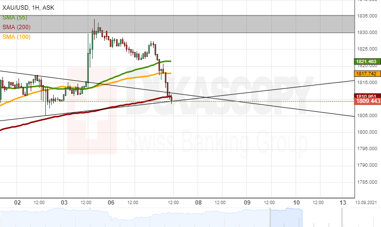 The summer high levels provided enough resistance for the yellow metal’s price to decline to previous trading levels. At mid-day on Tuesday, the price passed the support of the 200-hour SMA and the 1,810.00 level.