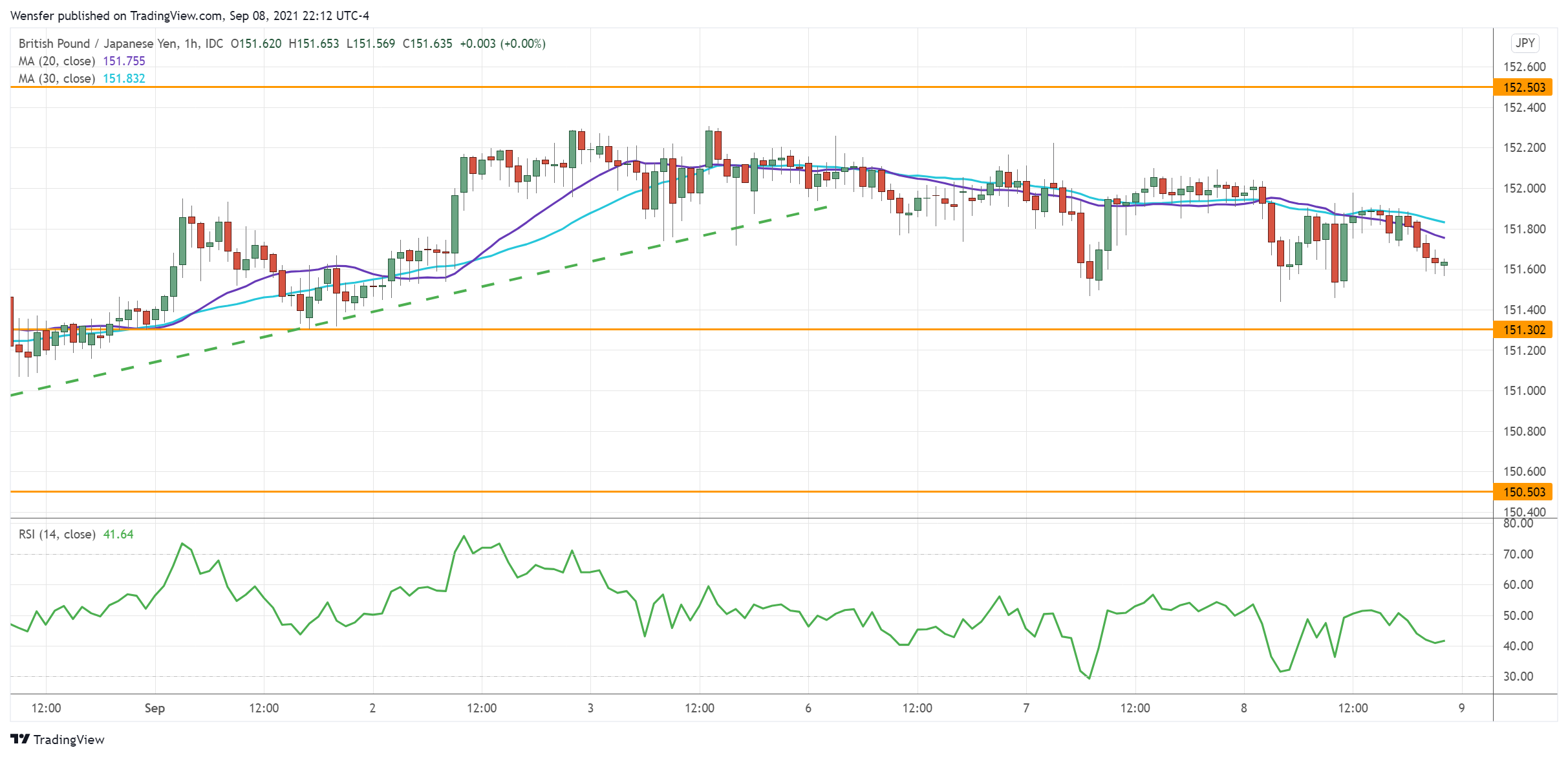An oversold RSI may attract buying interest at 151.30. Then a rebound will need to clear 152.50 to keep the bullish bias intact.