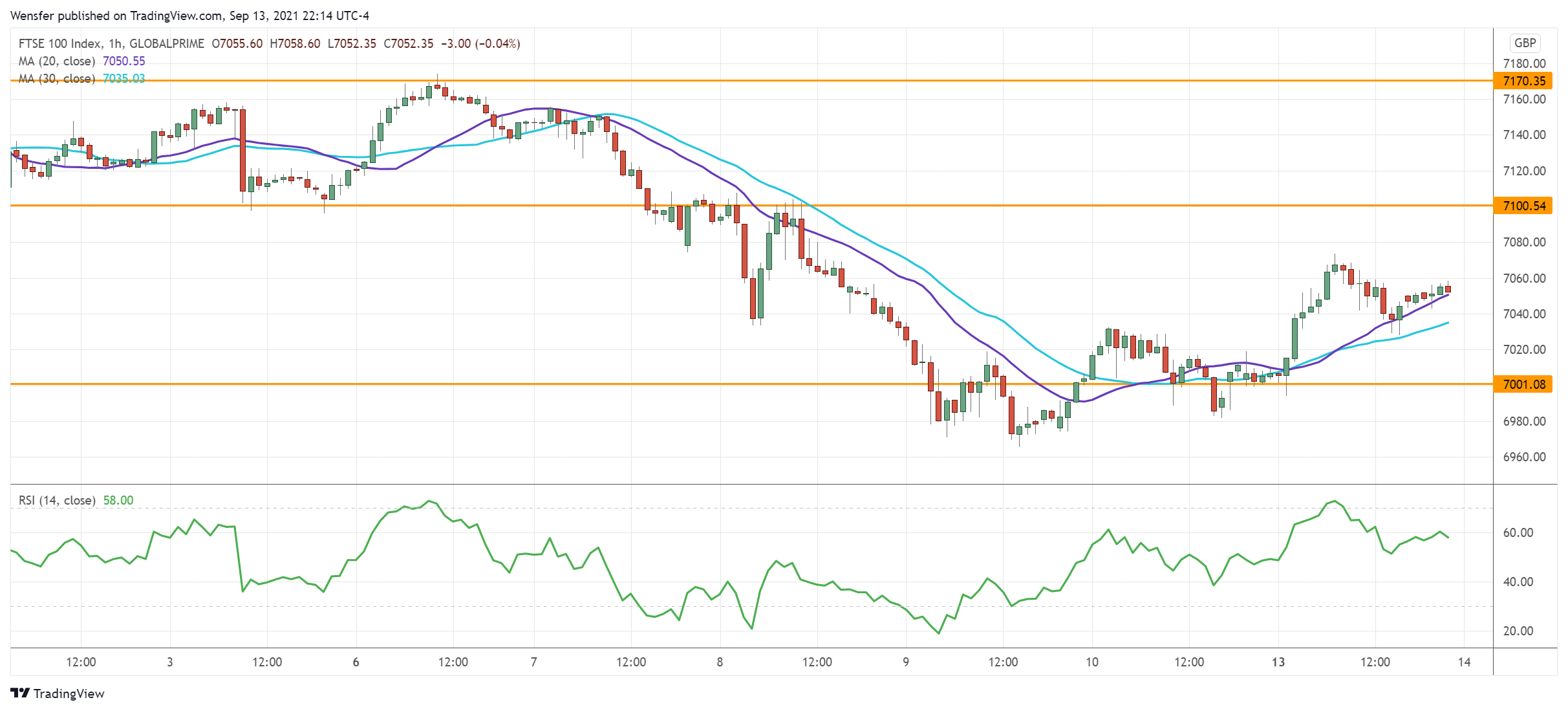 The FTSE 100 recoups losses supported by strong performance in cyclical stocks. The index has bounced off the critical support (6970) from the daily chart.