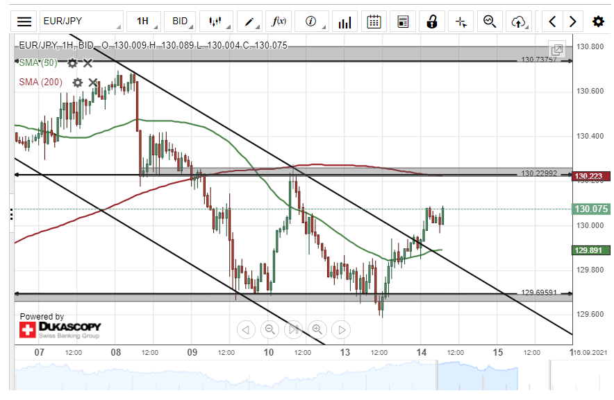 However, the 200– hour simple moving average at 130.22 could provide resistance for the EUR/JPY currency exchange rate within this session.