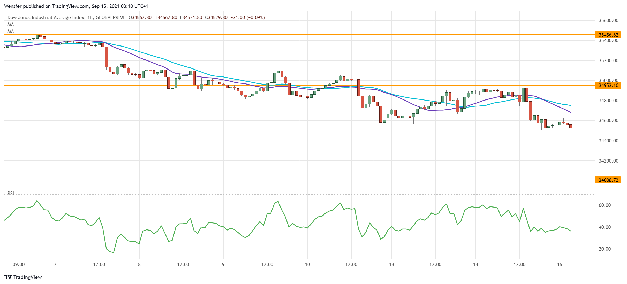 The psychological level (34000) from last July would be the next target. On the upside, 34950 is a fresh resistance where sellers would be eager to erase any rebound.