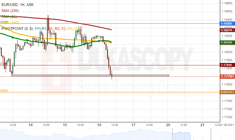 If the decline of the EUR/USD would continue, it would most likely look for support in the weekly S2 simple pivot point at 1.1751. Below the pivot point, a 61.80% Fibonacci retracement level at the 1.1707 level could hold out.