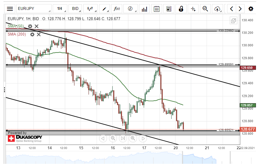 However, the support level at 128.65 could provide support for the EUR/JPY currency exchange rate within this session.