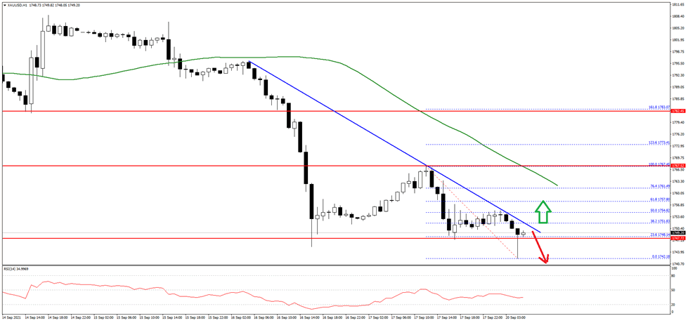 The bears were able to push the price below the $1,750 level and the 50 hourly simple moving average. A low is formed near $1,742 and the price is now attempting a recovery.