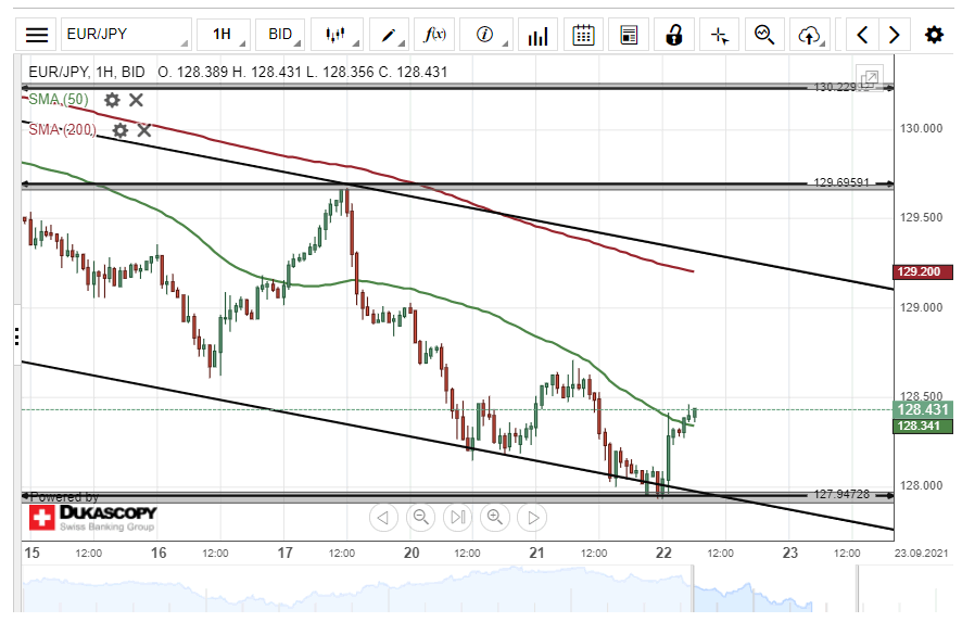 During Tuesday’s trading session, the common European currency fell by 70 pips or 0.54% against the Japanese Yen. The currency pair tested the 128.00 level on Wednesday.