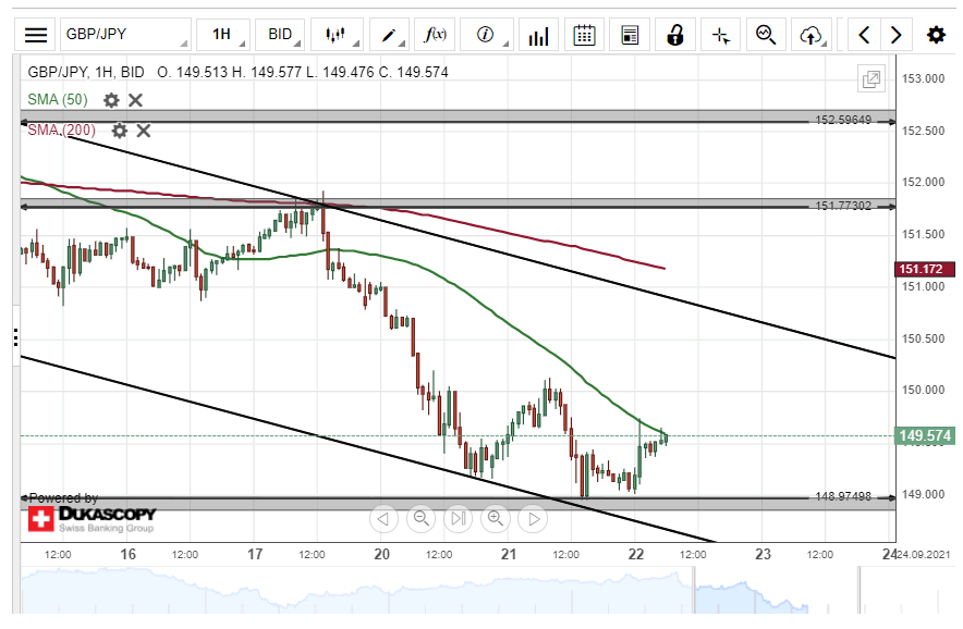 However, the lower line of a descending channel pattern could provide support for the GBP/JPY currency exchange rate within this session.