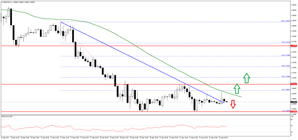 A low was formed near 1.3640 and the pair settled below the 50 hourly simple moving average. Recently, there was a minor recovery wave above 1.3660. There was a break above a key bearish trend line at 1.3665 on the hourly chart.