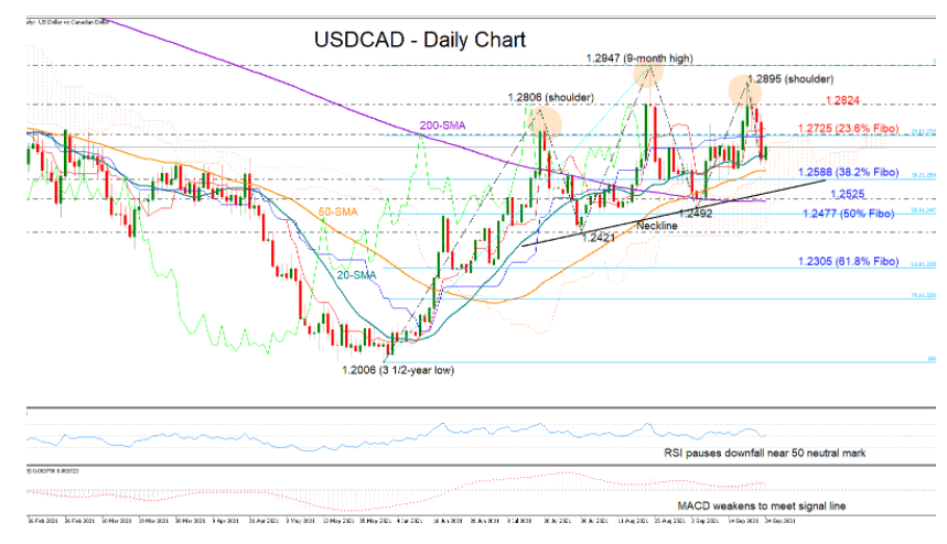 Nevertheless, unless the price dives below the 200-day SMA and the previous low of 1.2492, confirming a bearish head and shoulder structure, the upward pattern will remain valid. Prior to that, support could occur near the 50-day SMA and the 1.2588 mark, where the 38.2% Fibonacci retracement of the 1.2006 – 1.2947 is also positioned. Should the market close below 1.2492, the spotlight will shift to July’s trough of 1.2421.