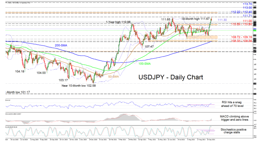USDJPY is confronting the March 2020 rally high of 111.71 for a second time in nearly three months after its recent bullish propulsion from around the 109.00 handle. The 200-day simple moving average (SMA) is defending the medium-term positive structure, while the marginal upturn in the 50- and 100-period SMAs, is indicating the recent intensity in positive price action.