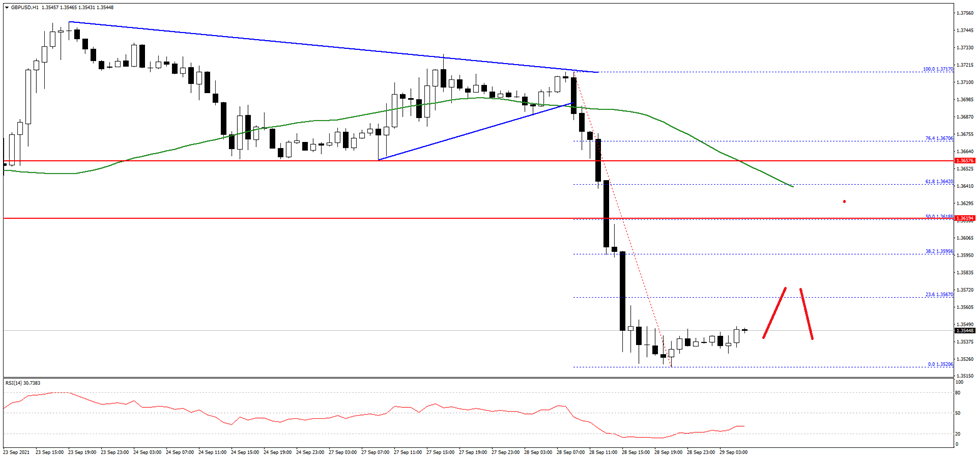 It even traded below the 1.3600 level and settled below the 50 hourly simple moving average. A low was formed near 1.3520 and the pair is now consolidating losses. An initial resistance on the upside is near the 1.3560 on FXOpen.