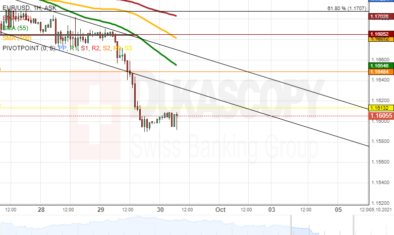 At mid-day on Wednesday, the EUR/USD plummeted, as it passed one weekly simple pivot point after another until it found support in the 1.1590 level. By Thursday’s European morning hours, the rate had been consolidating by trading sideways between the 1.1590 and 1.1610 levels.