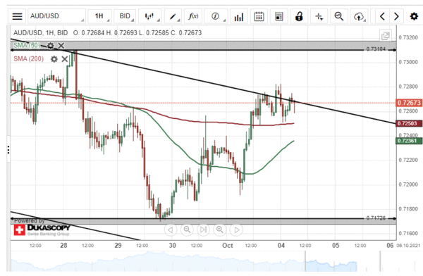 If the breakout occurs, a surge towards the resistance level at 0.7310 could be expected within this session.