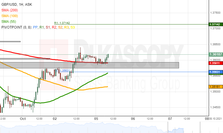 On Monday, the surge of the GBP/USD reached above the resistance zone that is located below the 1.3600 mark and the 200-hour simple moving average. However, after the surge, the pair retraced back down and up to Tuesday’s European morning the rate traded above the mentioned technical levels.