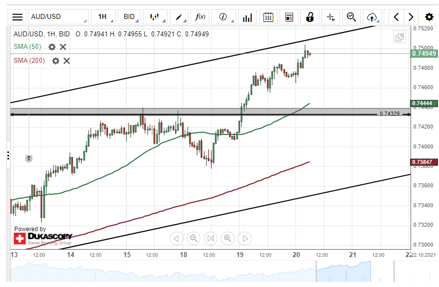 On Tuesday, the Australian Dollar rose by 77 pips or 1.04% against the US Dollar. The AUD/USD currency pair breached the resistance level at 0.7432 during yesterday’s trading session.