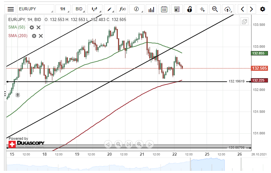 However, the support cluster at 132.20 could provide support for the EUR/JPY currency exchange rate within this session.