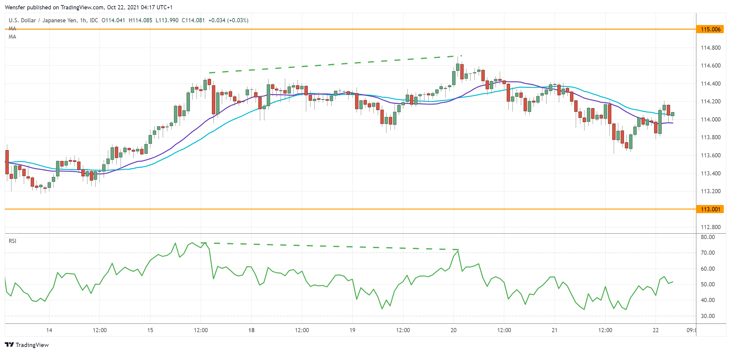 A breach below 113.90 would prompt weaker hands to exit, leading to a pullback towards 113.00. A rebound past the said resistance would send the price to March 2017’s high of 115.40.