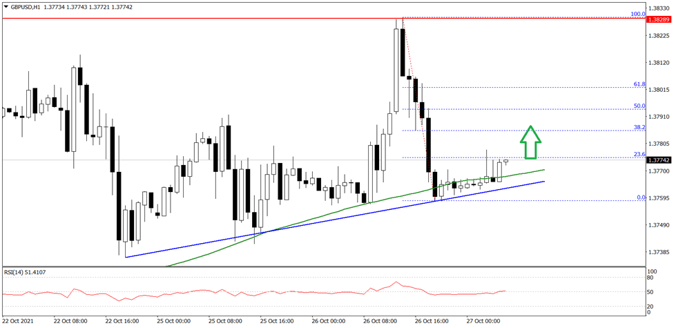 However, the pair is stable above the 1.3750 level and the 50 hourly simple moving average. There is also a key bullish trend line forming with support near 1.3765 on the hourly chart.