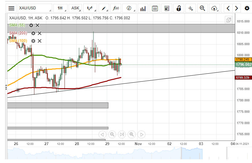 On Thursday, volatility was caused by the release of the US Advance GDP. During the volatility, the price for gold once again confirmed the 1,810.00 level as a resistance level. The following decline passed the 55 and 100-hour simple moving averages. By mid-Friday, the price had almost reached the 200-hour SMA at 1,790.20.