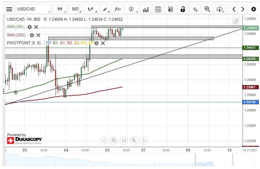 Meanwhile, a decline below the 1.2452/1.2457 zone’s support, could result in a decline. A decline would look for support first in the weekly R1 simple pivot point at 1.2442. Below the pivot point, the 1.2428/1.2434 zone and the 50-hour simple moving average might provide support.