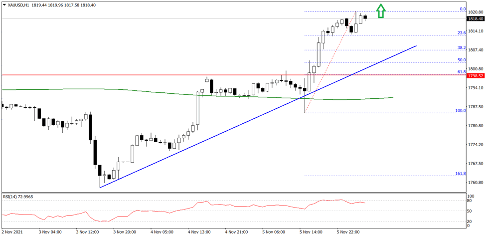 There is also a major bullish trend line forming with support near $1,808 on the hourly chart. The next key support is near the $1,788 level and the 50 hourly simple moving average, below which the price could revisit $1,760 on FXOpen.