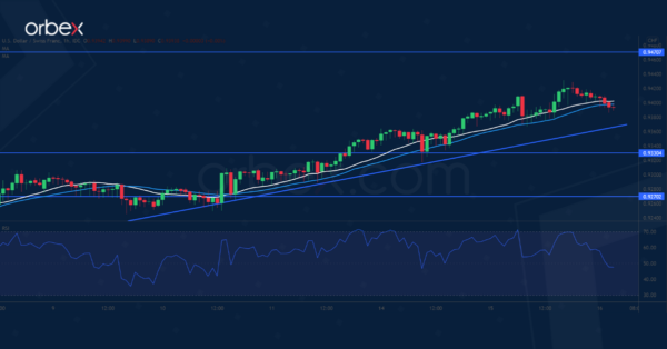 The US dollar continues upward as the Fed is set to increase its interest rates by 25bp. The rally sped up after it cleared the daily resistance at 0.9360.