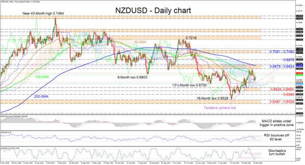 NZDUSD has generated positive traction off the 50-day simple moving average (SMA), which is bordering the tentative uptrend line pulled from the 16-month low of 0.6528. The longer-term 100- and 200-day SMAs are defending the broader bearish trend in the pair, while the flattened slope of the 50-day SMA, is hinting that the latest up wave remains active.