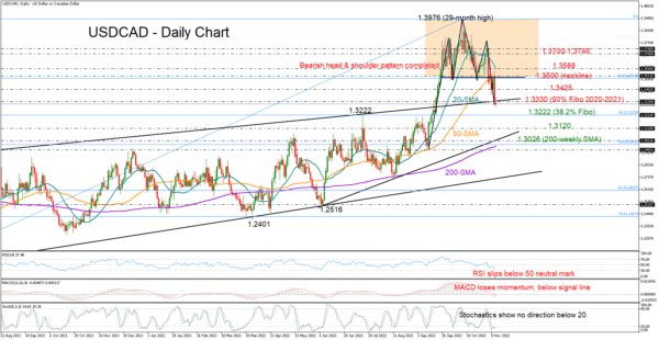 USDCAD completed a bearish head and shoulders structure following the rejection near the 50-day simple moving average (SMA) and the crash below the 1.3500 neckline on Thursday.