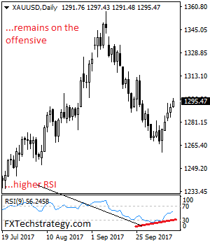 GOLD – The commodity extended its recovery on Wednesday leaving risk higher in the days ahead. However, beware of pullback threats. On the downside, support comes in at the 1,290.00 level where a break will turn attention to the 1,280.00 level. Further down, a cut through here will open the door for a move lower towards the 1,270.00 level. Below here if seen could trigger further downside pressure targeting the 1,260.00 level. Conversely, resistance resides at the 1,300.00 level where a break will aim at the 1,310.00 level. A turn above there will expose the 1,320.00 level. Further out, resistance stands at the 1,330.00 level. Its daily RSI is bullish and pointing higher suggesting further strength. All in all, GOLD looks to recover further higher.