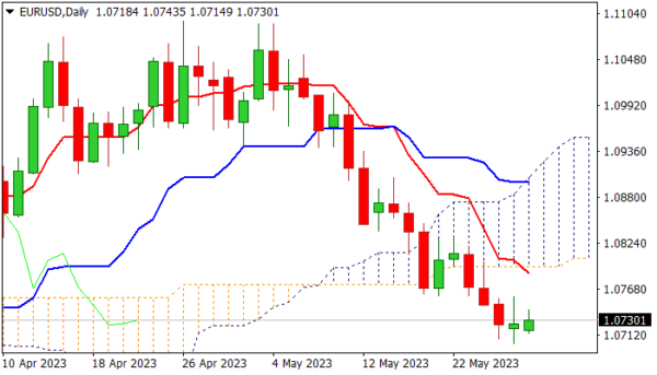 Today’s close above Friday’s high (1.0758) is seen as a minimum requirement in formation of reversal pattern, which will keep renewed bulls in play for attack at key barriers at 1.0800 zone (falling daily Tenkan-sen / Fibo 23.6% of 1.1095/1.0701 / base of thickening daily cloud).