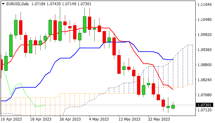 Sustained break here is needed to generate stronger bullish signal and open way for recovery towards 1.0852 (Fibo 38.2%) and 1.0898 (daily Kijun-sen / 50% retracement of 1.1095/1.0701).