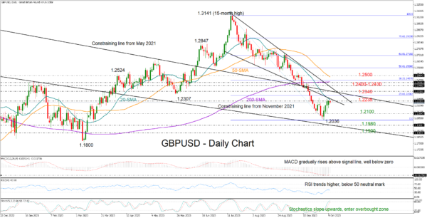 Nevertheless, some caution might be necessary as the journey higher is expected to be challenging. An extension above the 20-day SMA could pause near 1.2340, where the descending line from May 2021 is located. Then, the 1.2400-1.2430 zone, which encapsulates the resistance trendline from mid-July and the 200-day SMA, could immediately block the way towards the 50-day SMA and the 1.2500 round level. A decisive break above the latter would brighten the short-term outlook.