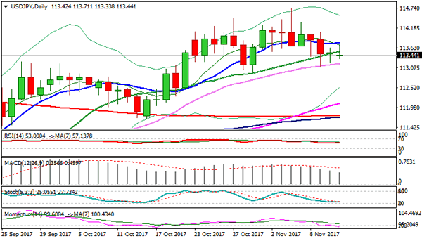 Underlying bulls remain in play for fresh attempts through 114.00 while 30SMA and 112.95 support (31 Oct trough) contain.