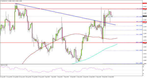 - EUR/USD started a fresh increase above the 1.1120 resistance.