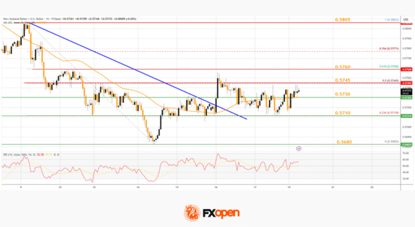 On the hourly chart of NZD/USD on FXOpen, the pair also followed a similar pattern and declined from the 0.5800 zone. The New Zealand Dollar gained bearish momentum and traded below 0.5750 against the US Dollar.