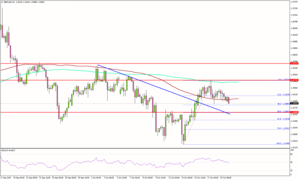 On the upside, the pair faces resistance near the 1.3470 level and the 200 simple moving average (green, 4-hour). The next hurdle could be near 1.3500. A close above 1.3500 resistance might push the pair to 1.3550.