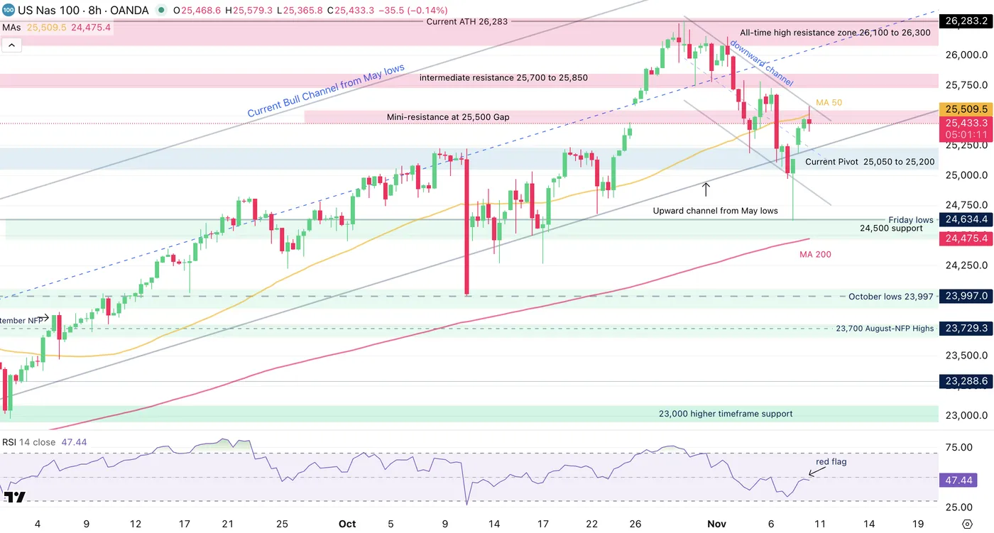 Nasdaq 8H Chart, November 10, 2025 – Source: TradingView