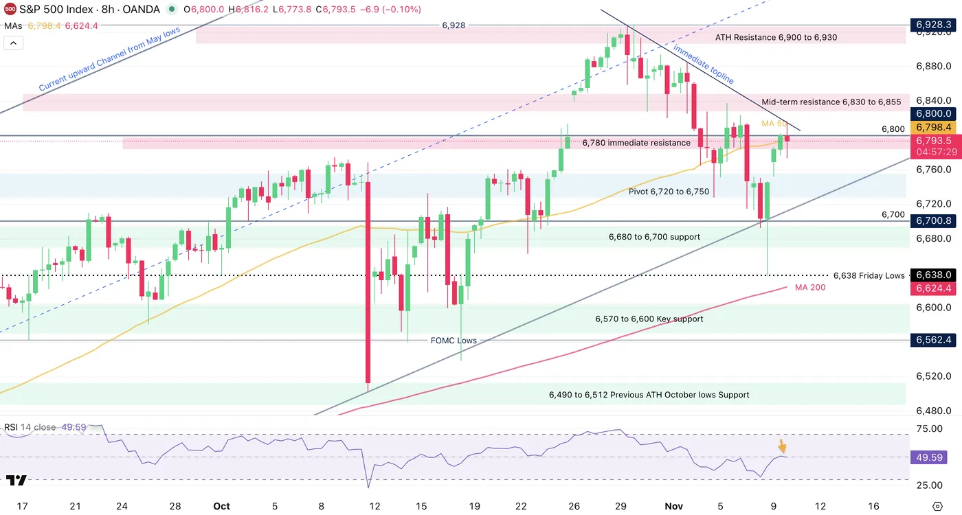 S&P 500 8H Chart, November 10, 2025 – Source: TradingView