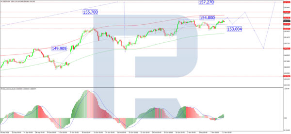 On the H1 chart, the pair has completed an initial growth impulse to 154.48. A near-term correction towards 153.65 is now expected. Once this corrective phase concludes, we anticipate the resumption of the broader upward trend, with the next primary target at 155.70. The Stochastic oscillator corroborates this view. Its signal line is below 50 and trending downwards towards 20, suggesting that short-term downward pressure (the expected correction) is building before the next potential upward wave.